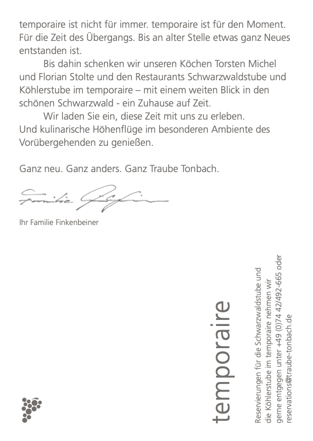 Konzeption, Text und Namensfindung für das Traditionshotel im Schwarzwald mit seiner Spitzengastronomie. Nach dem Verlust des Stammhauses durch einen Brand darf ich den Familienbetrieb zusammen mit der Agentur discodoener in Sachen Kommunikation unterstützen.