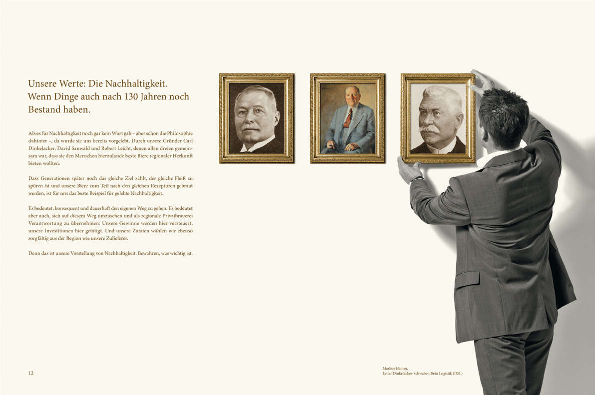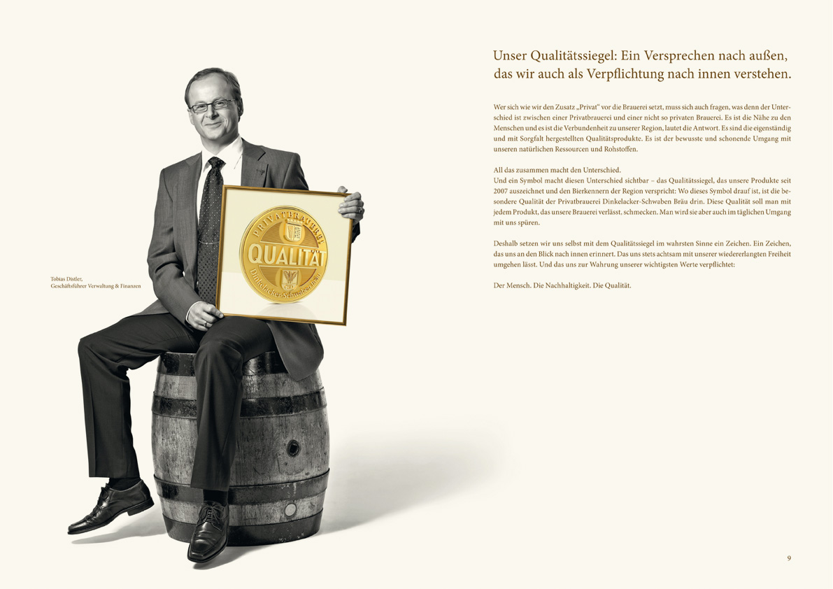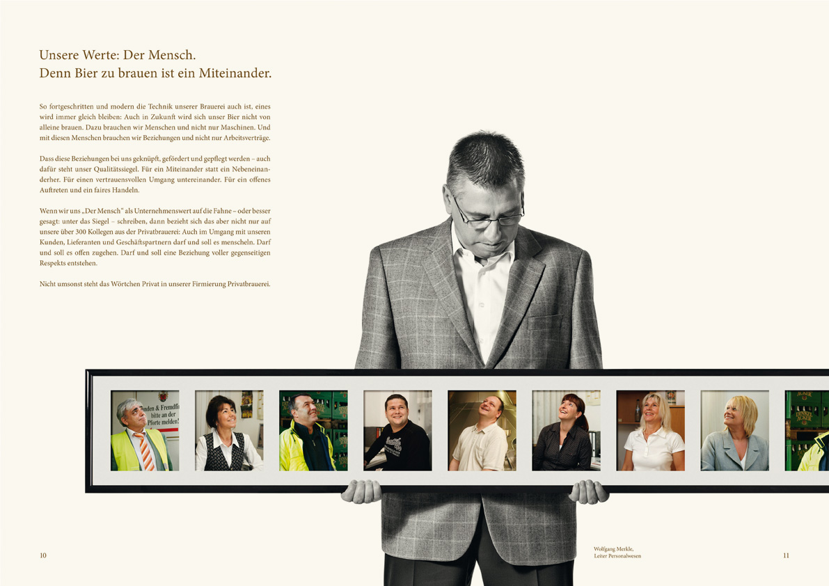 Eine Imagebroschüre, die das wichtigste Kapital der Traditionsbrauerei zeigt: die Mitarbeiter. Vom Braumeister über den Außendienst bis zum Geschäftsführer. So wird das Private an Baden-Württembergs größter Privatbrauerei spür- und sichtbar.