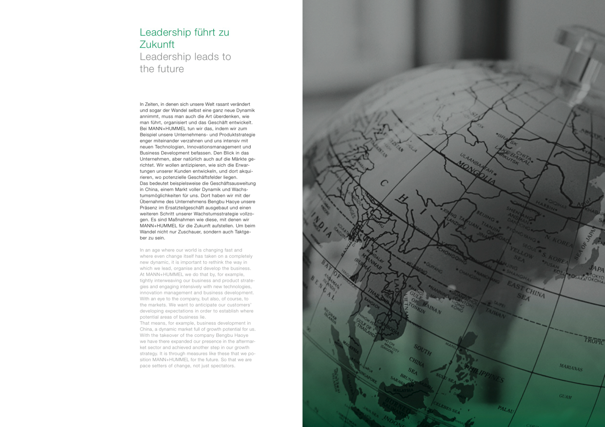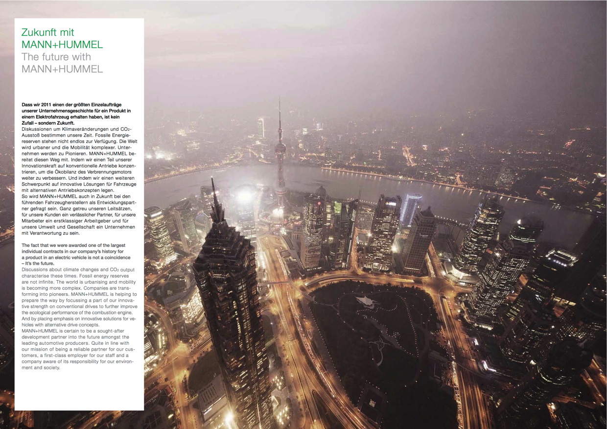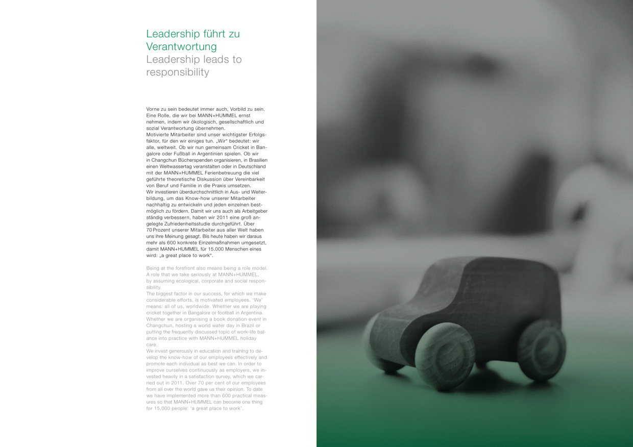 Geschäftsbericht für den Entwicklungspartner und Serienlieferant der internationalen Automobil- und Maschinenbauindustrie Mann + Hummel in Zusammenarbeit mit Projekttriangle Design Studio.