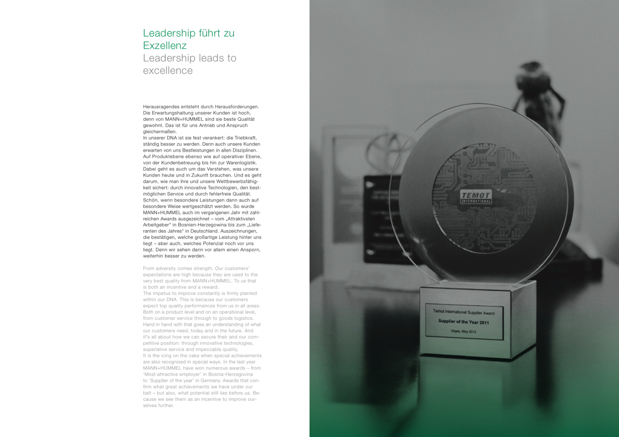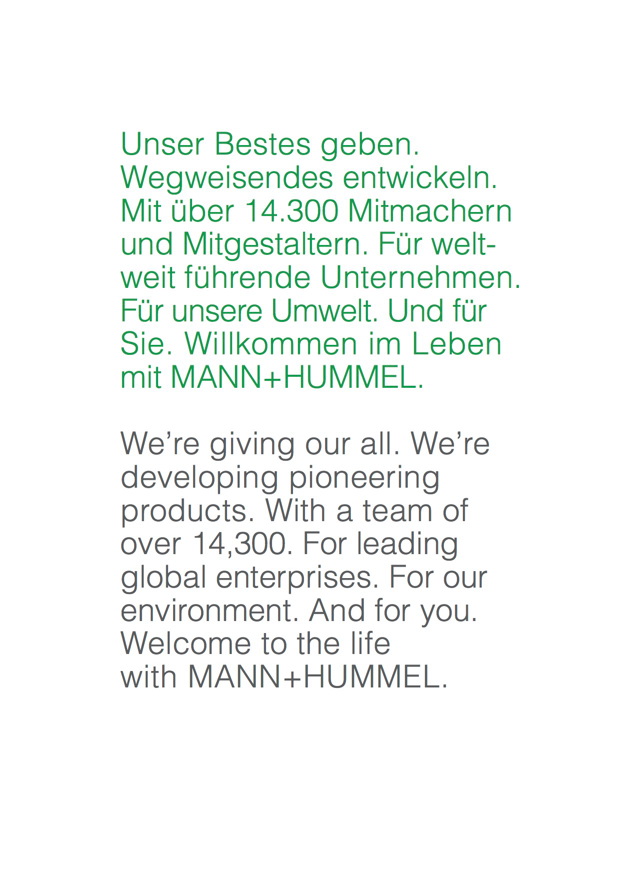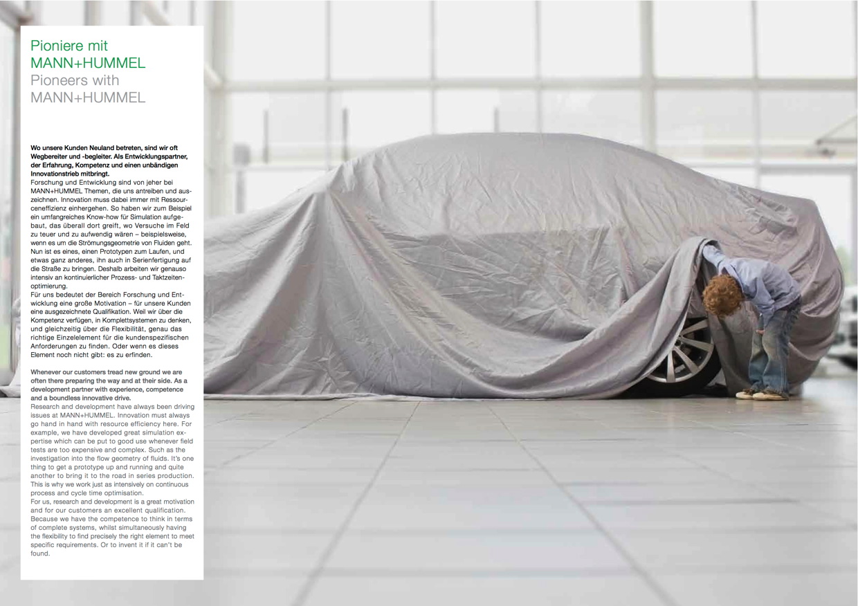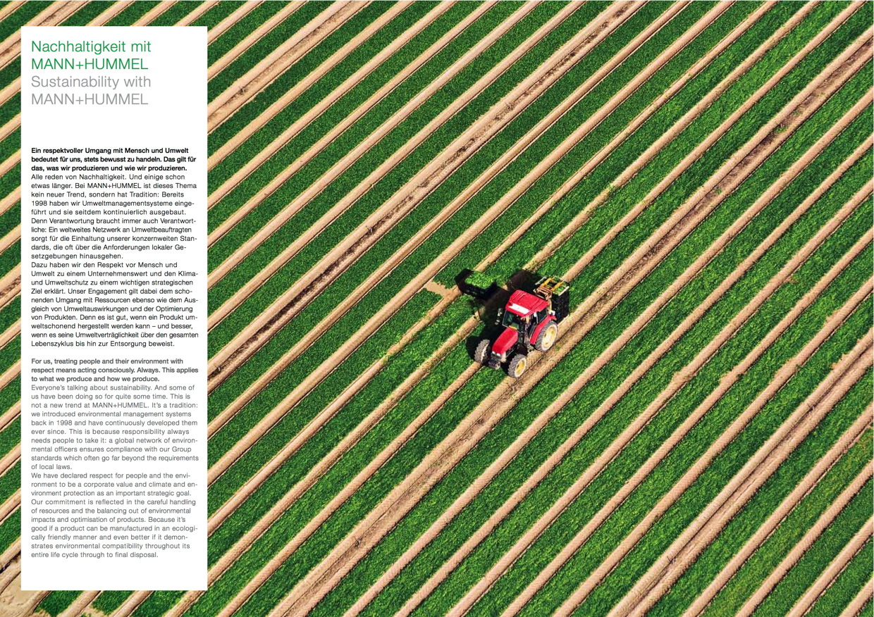 Geschäftsbericht für den Entwicklungspartner und Serienlieferant der internationalen Automobil- und Maschinenbauindustrie Mann + Hummel in Zusammenarbeit mit Projekttriangle Design Studio.