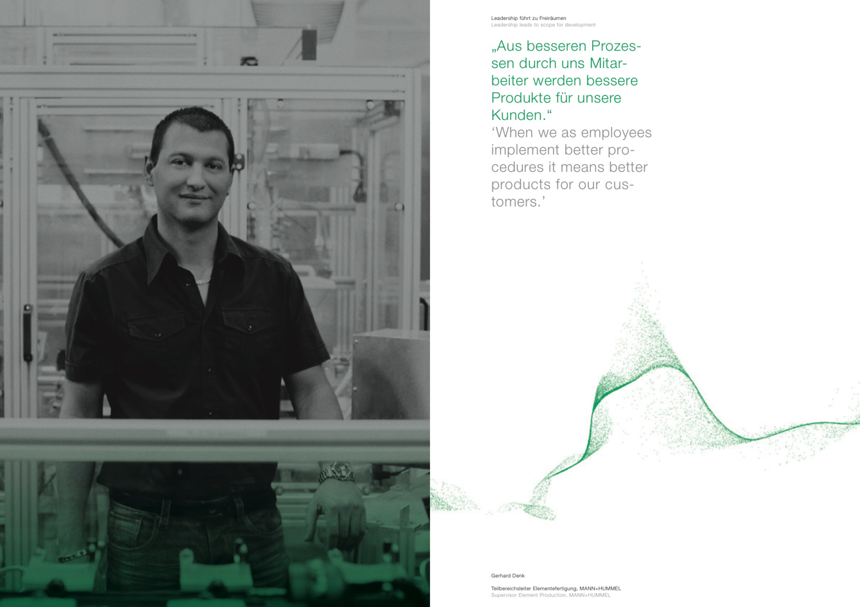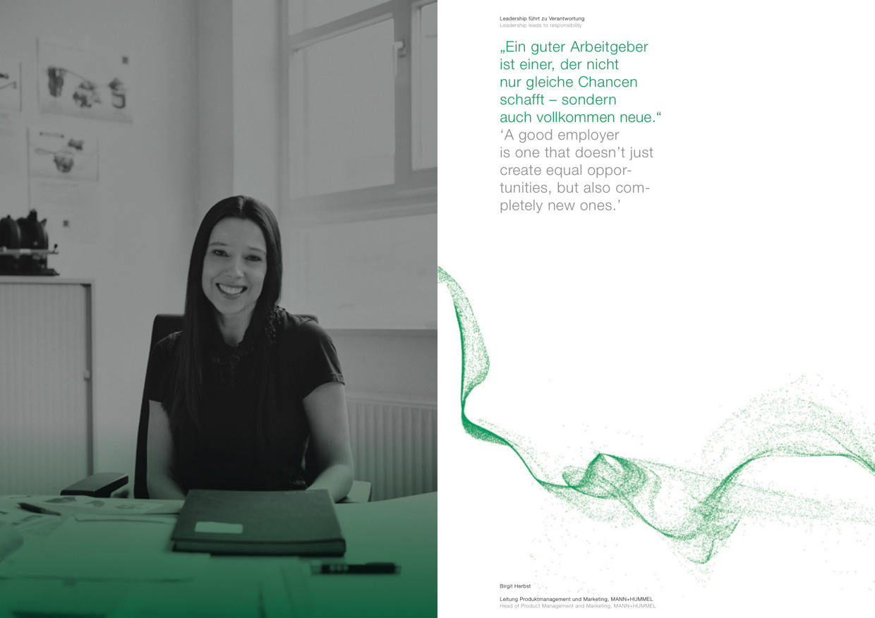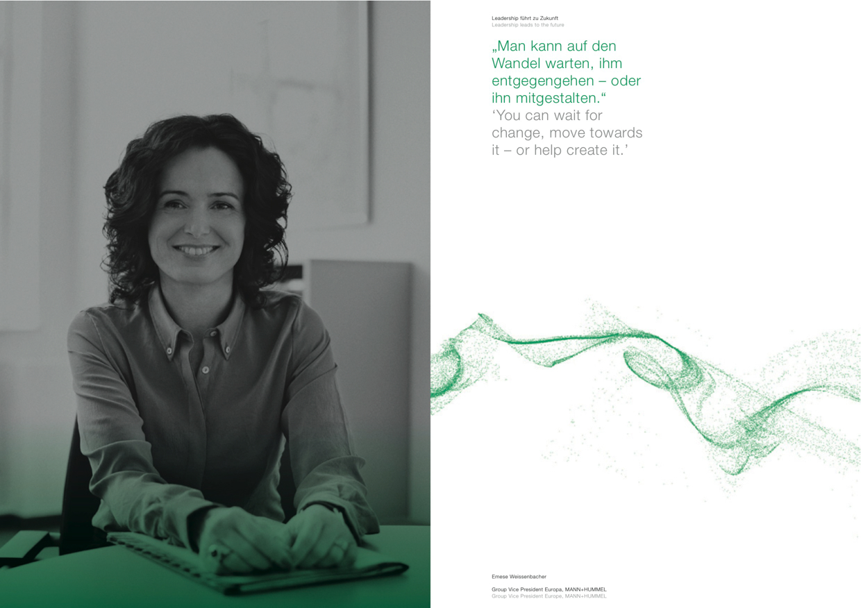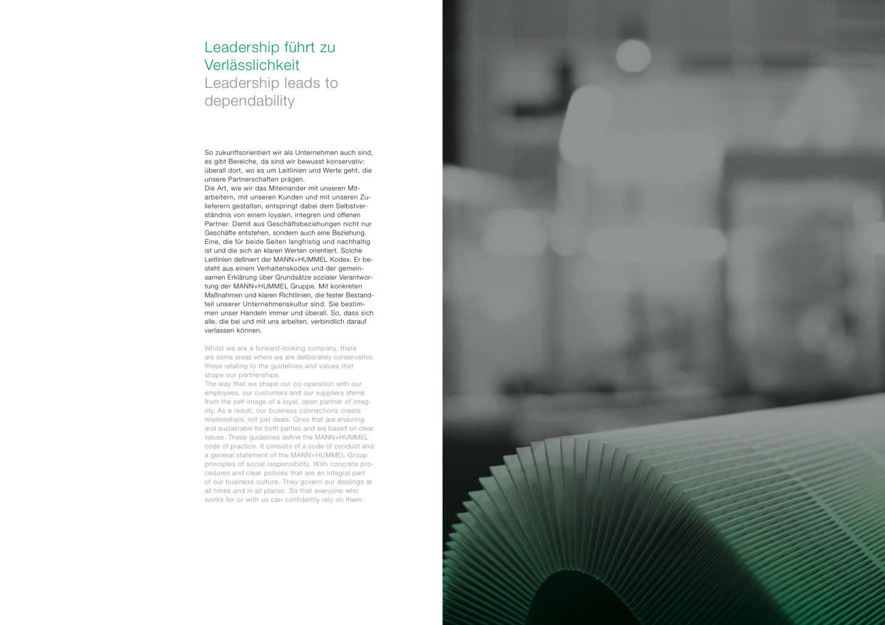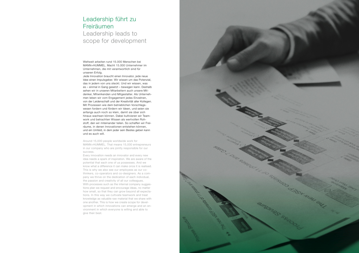 Auch im zweiten Jahr darf ich das Designstudio Projekttriangle beim Geschäftsbericht für MANN+HUMMEL textlich und konzeptionell unterstützen. Für den Marktführer im Bereich Filter überlegen wir uns, was Leadership überhaupt bedeutet – und gehen einen Schritt weiter: wenn es Führungsstärke bedeutet – wohin führt dann Leadership.